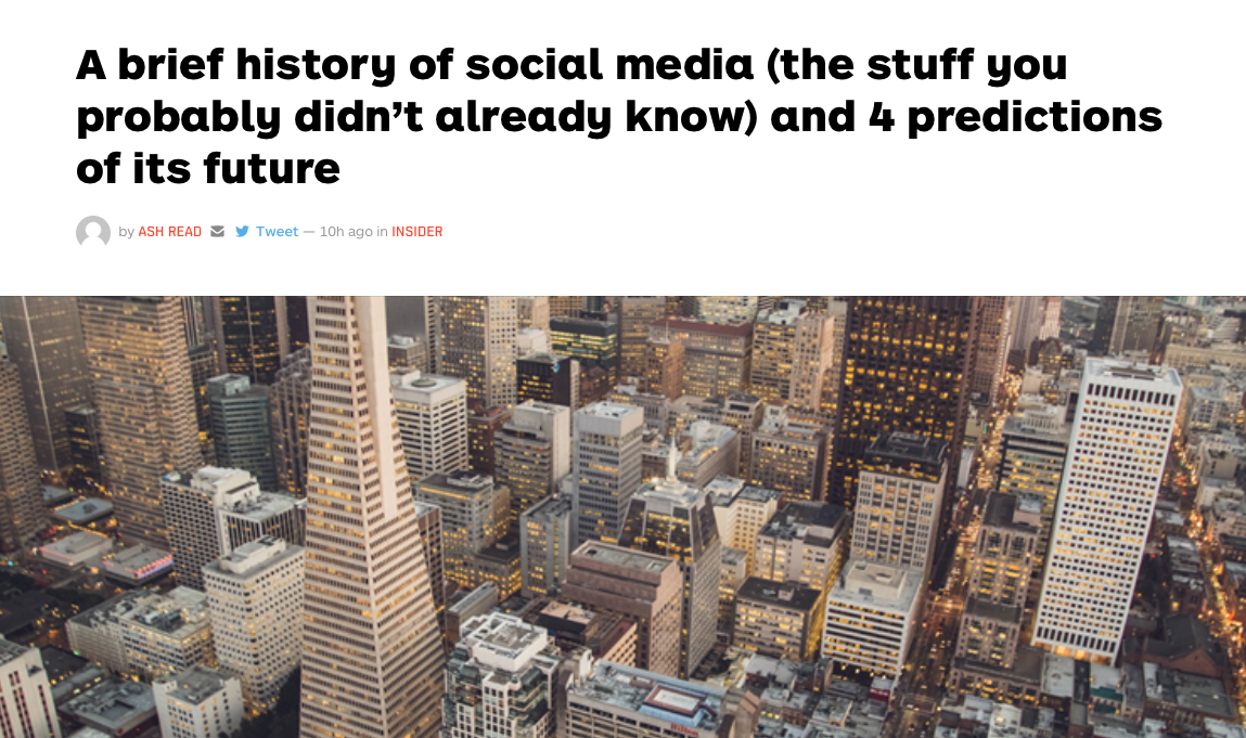 This article has some interesting facts/figures, though I think it misses the mark wrt some important aspects of history and current players. For instance, there is no mention of BBSs/forums, which continue to be active, with people coalescing around subjects of interest rather than general aggregations (and then sub-grouping like FB does). Also reddit is conspicuously absent from the discussion, but the social media cognoscenti love to marginalize it. As for the future, I think overload will become more of a “thing” that people react to, and while AI might “fix” that, there may in fact be a backlash into more point-to-point communication and less broadcast (e.g. FB feeds). Time will tell. But I think the death of the still image is going to happen. Video has its purpose, but in a world of cognitive overload, 1 frame might be more powerful than 24fps.